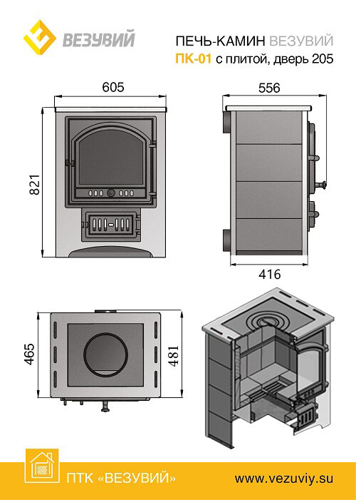 Дровяная печь-камин Везувий ПК-01 (205) с плитой 12 кВт 60.5 см 81.3 см 55.6 см бежевый 200 м³