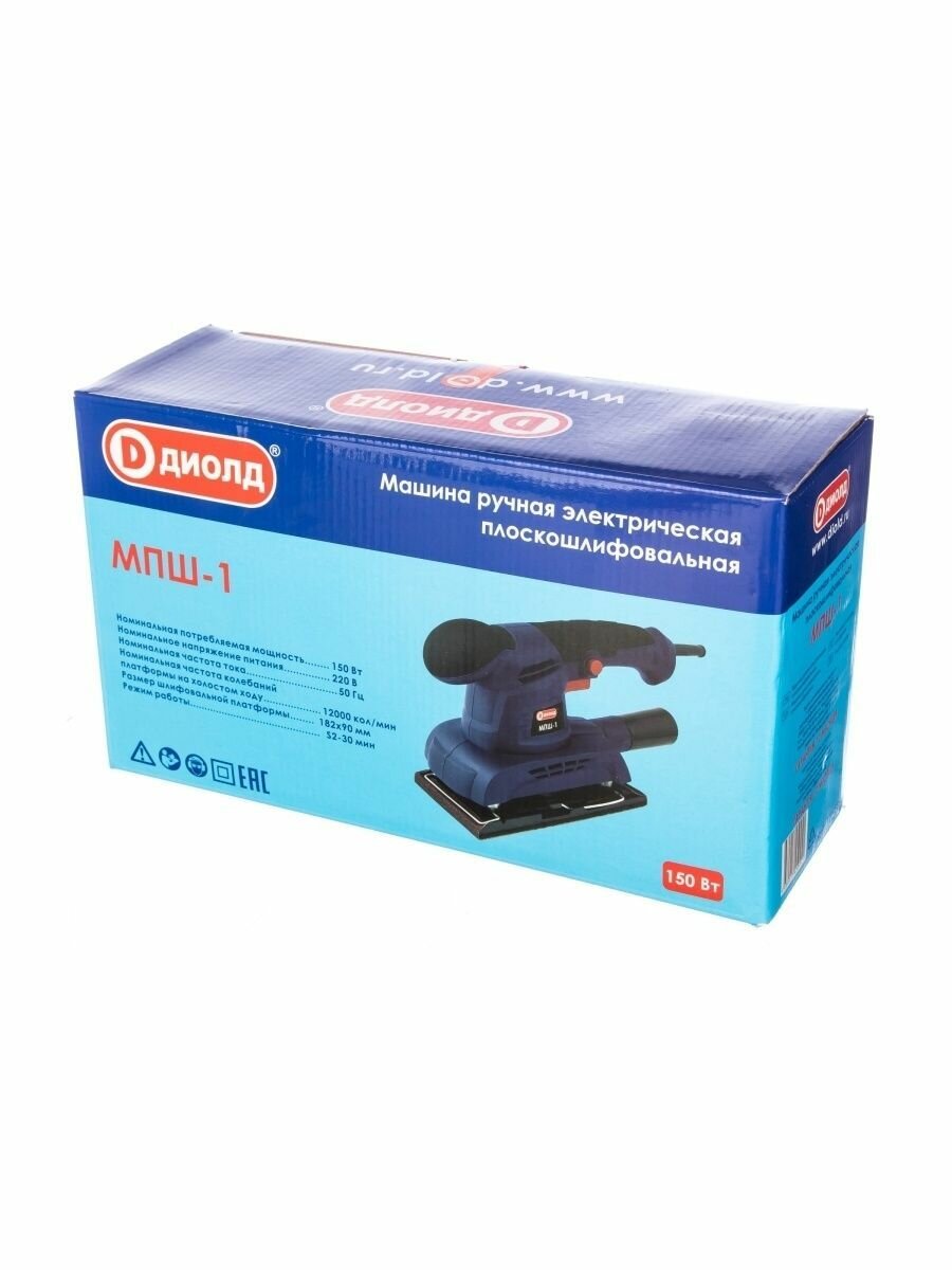 Машина плоскошлифовальная диолд МПШ-1 / Шлифмашина вибрационная / ПШМ, 150 Вт, 12000 кол/мин, 182х90 мм производитель Россия