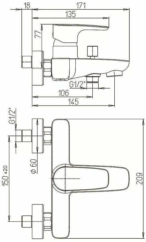 Смеситель для ванны Паини Parallel 47CR111LMKM без аксессура, шт.