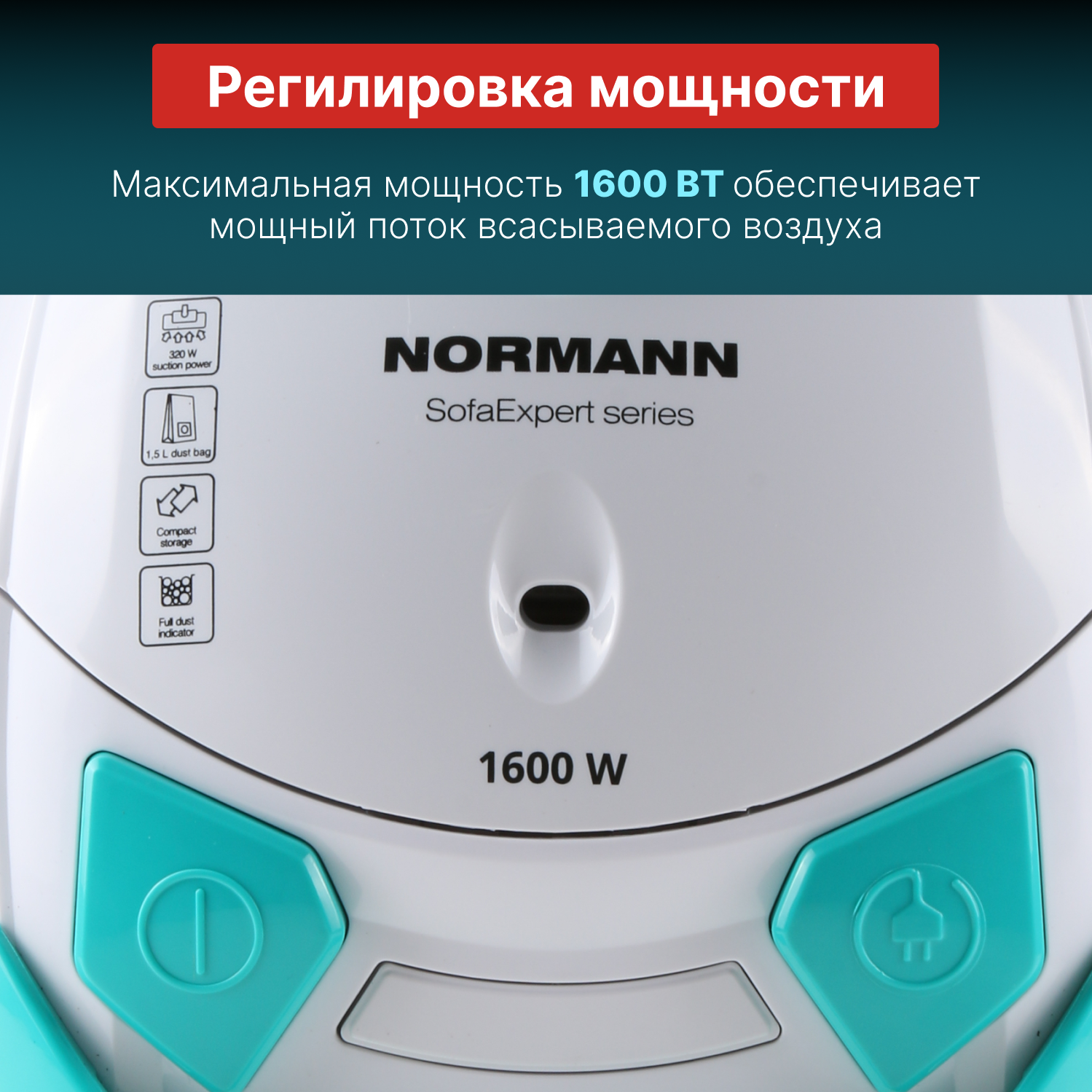 Пылесос бытовой NORMANN AVC-111 мешок 1,5 л белый, голубой 1600 Вт для дома проводной
