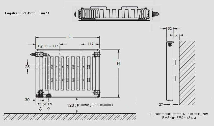 Стальной панельный радиатор отопления Buderus Logatrend VK/Profil 11/300/600