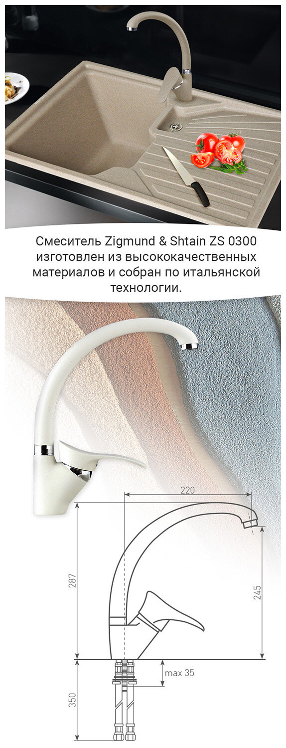 Смеситель для мойки Zigmund & Shtain ZS 0300 каменная соль