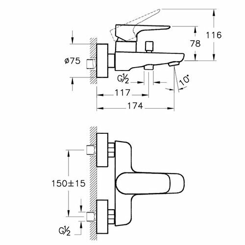 СохранитьСмеситель для ванны/душа Vitra X-Line настенный, однозахватный, короткий излив, цвет:хром A42324EXP интересное:
