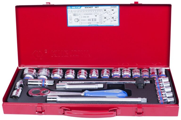 4528MR KING TONY Набор торцевых головок с принадлежностями 1/2", шестигранные, 10-32 мм, 24 предмета 4528MR интересное: