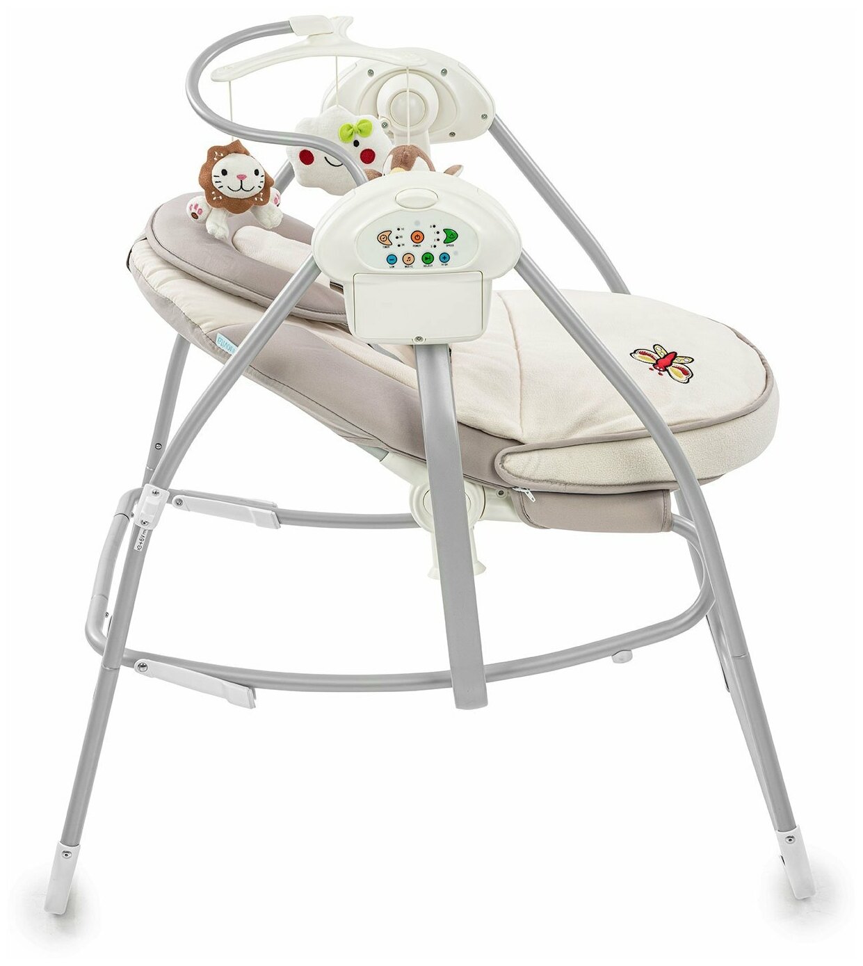 | Плюсы: | Рама прочная, легкая и не расшатывается когда качелька включена. Ее не слышно когда ребенок качается, моторчик тихий. Неплохой выбор мелодий, выставляется таймер и скорость укачивания. |