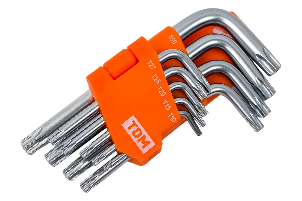 СохранитьTDM Алмаз набор ключей типа «TORX» с отверстием, 9 шт. Т10-Т50, держатель в блист. (8!) SQ1021-0102 (арт. 555347) интересное:
