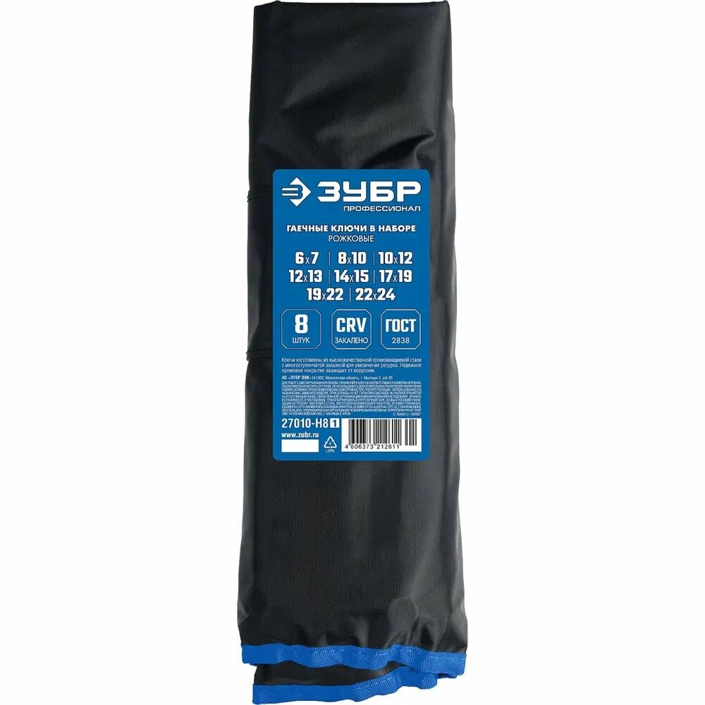 Купить Набор рожковых гаечных ключей ЗУБР Профессионал 8 шт. 6-24 мм (27010-H8_z01)