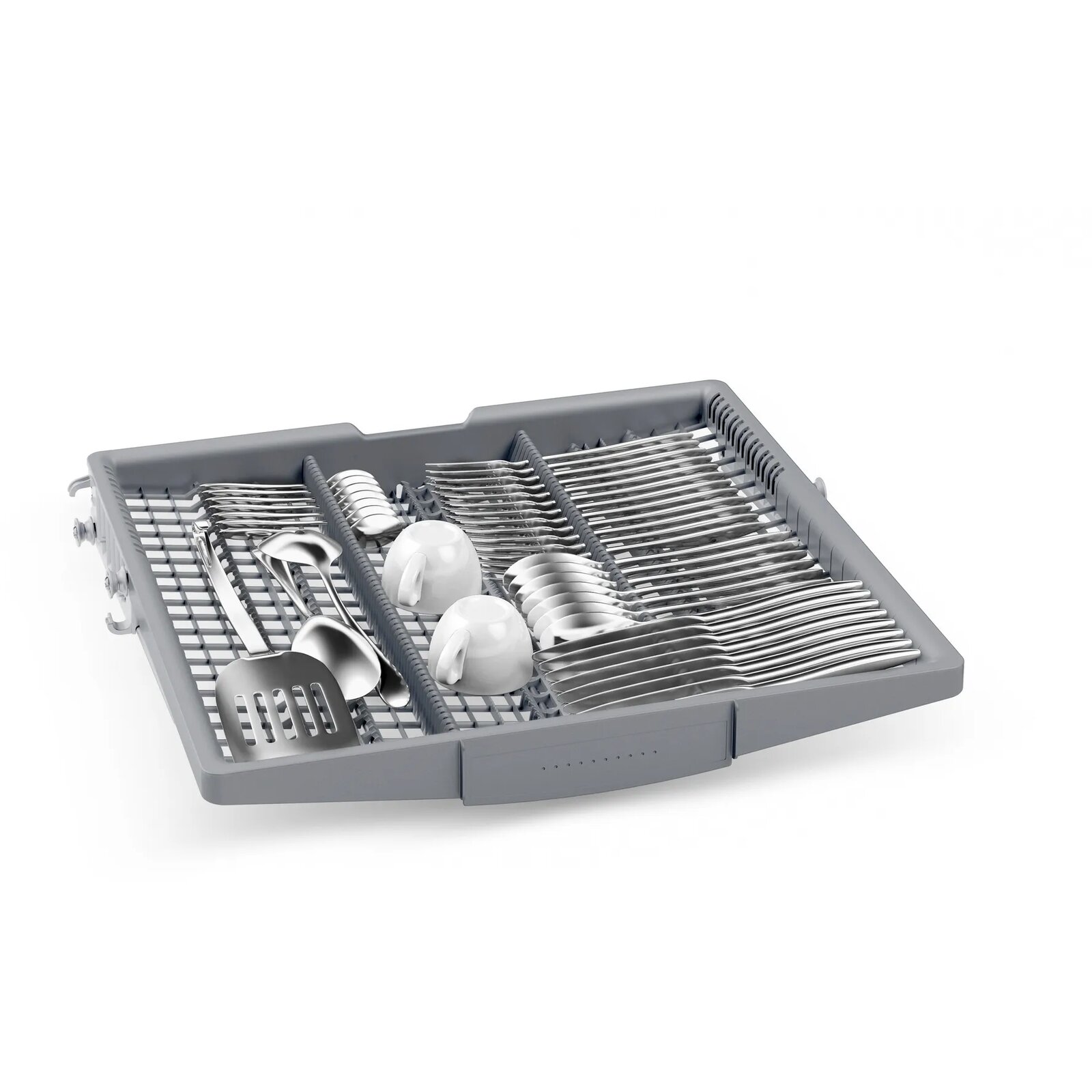 Дополнительно радует верхний отдел для ложек, вилок. Это гораздо удобнее корзинки для ложек, вилок, как это реализовано в других посудомоечных машинах. |