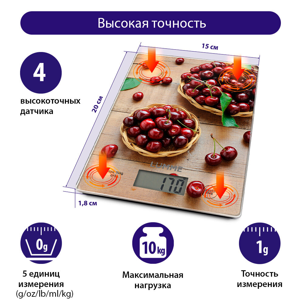 Купить LUMME LU-1340 сладкая черешня весы кухонные сенсор, встроенный термометр