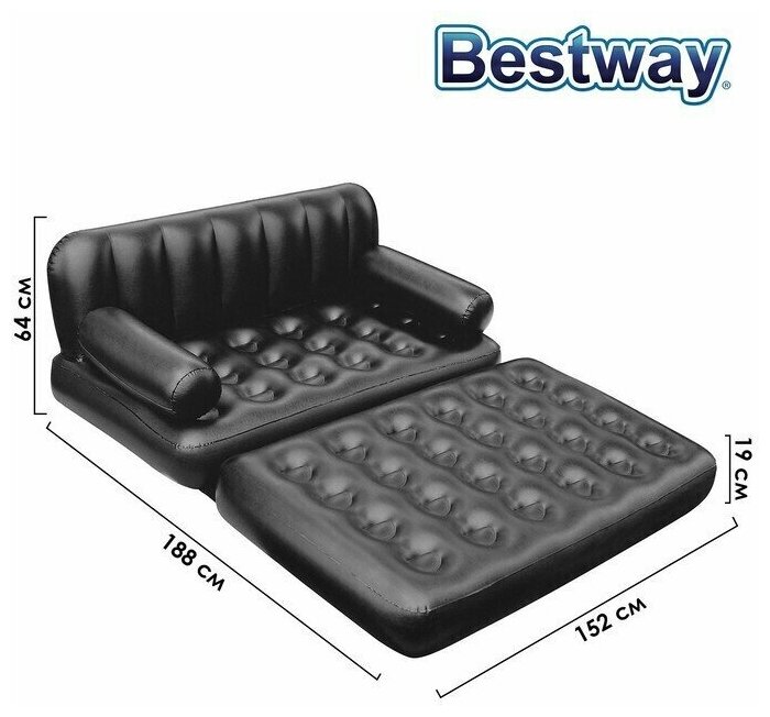 Надувной диван Bestway 5-in-1 Multifunctional Couch 75054, 188х152 см, черный