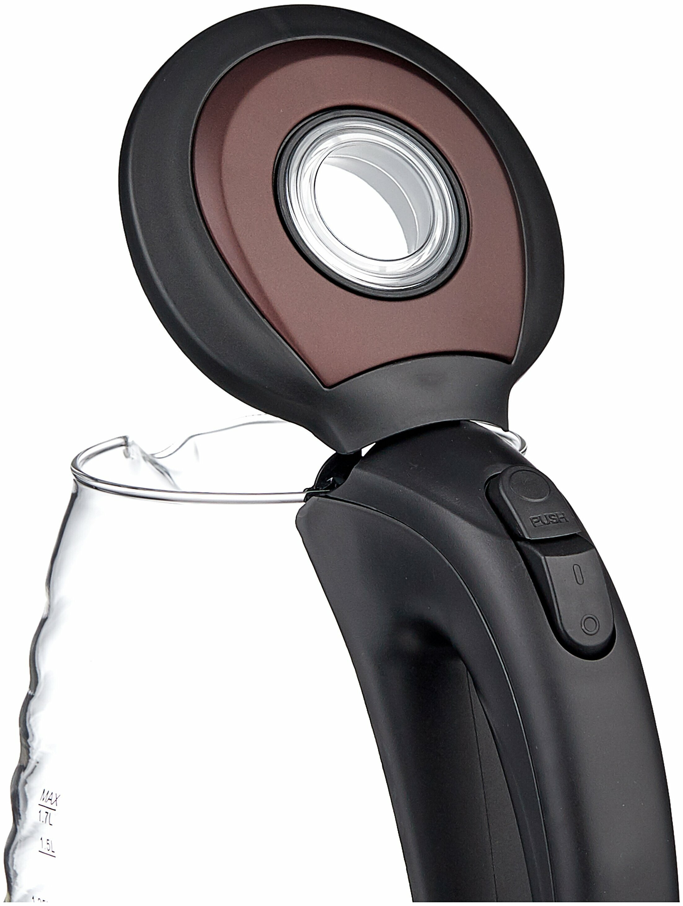 Чайник SCARLETT SC-EK27G97, 1,7 л, 2200 Вт, закрытый нагревательный элемент, стекло, коричневый, 455449