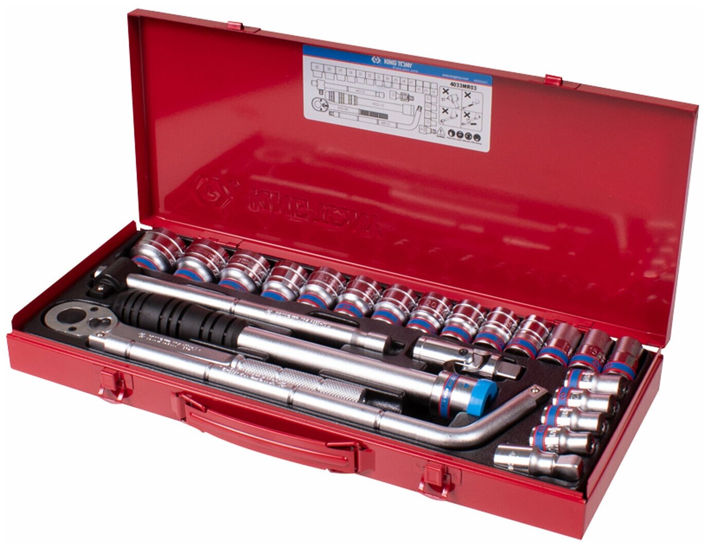 4033MR KING TONY Набор торцевых головок с принадлежностями 1/2", 12гр., 10-32 мм, 24 предмета 4033MR интересное: