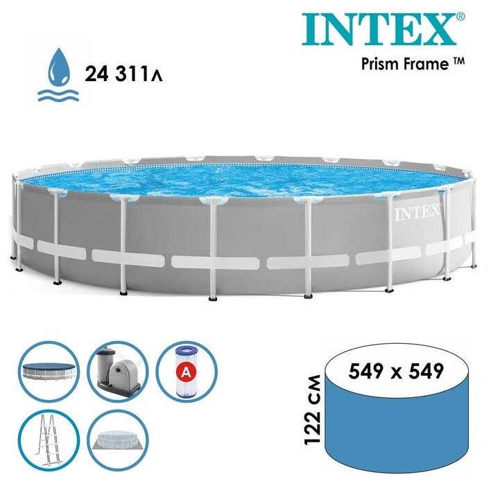 Бассейн каркасный круглый 549х122см, 24311л, ф.-н. 5678л/ч серии Prism Frame, большой для всей семьи, Intex 26732
