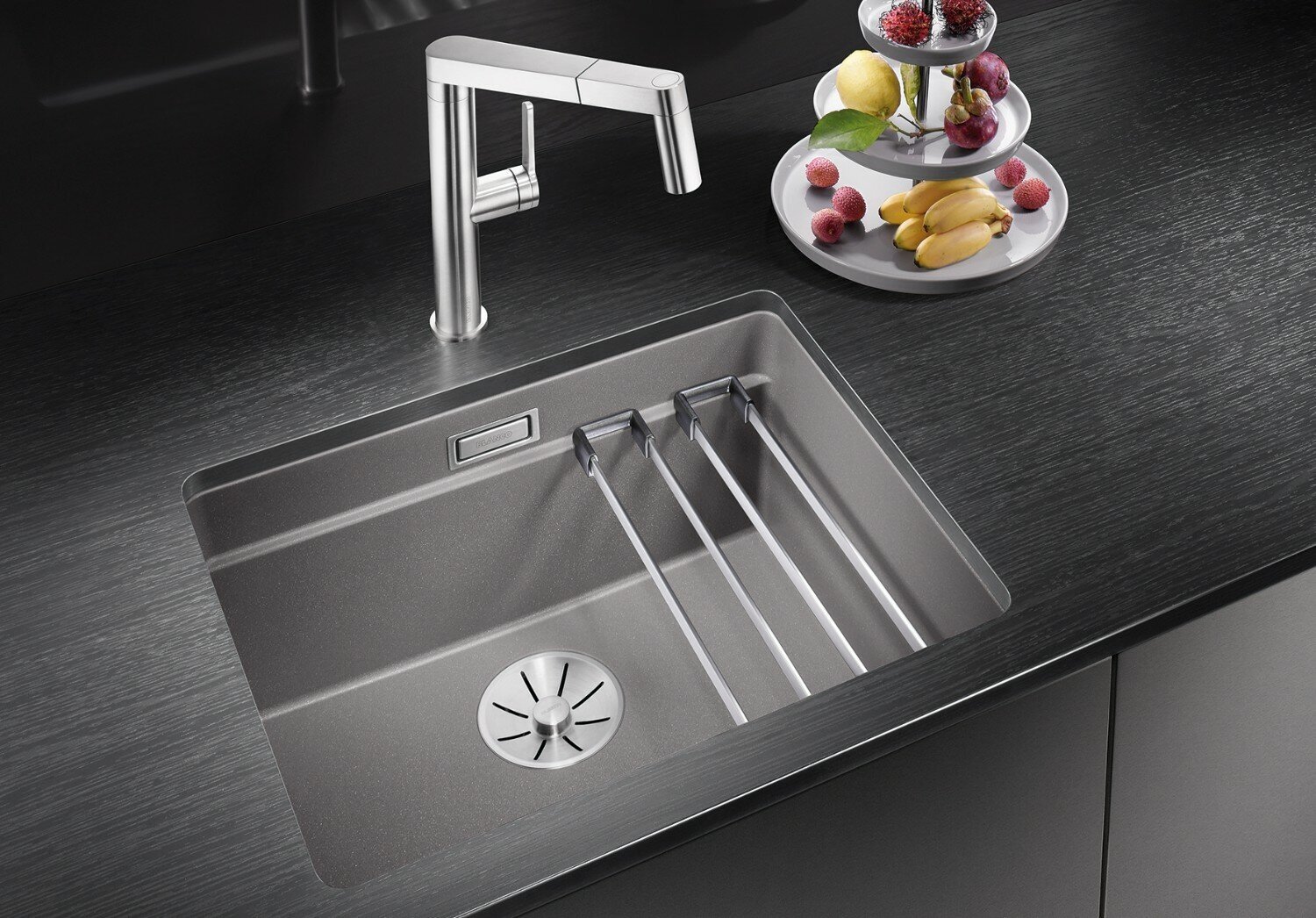Мойка для кухни Blanco Etagon 500-U тёмная скала, отводная арматура InFino®