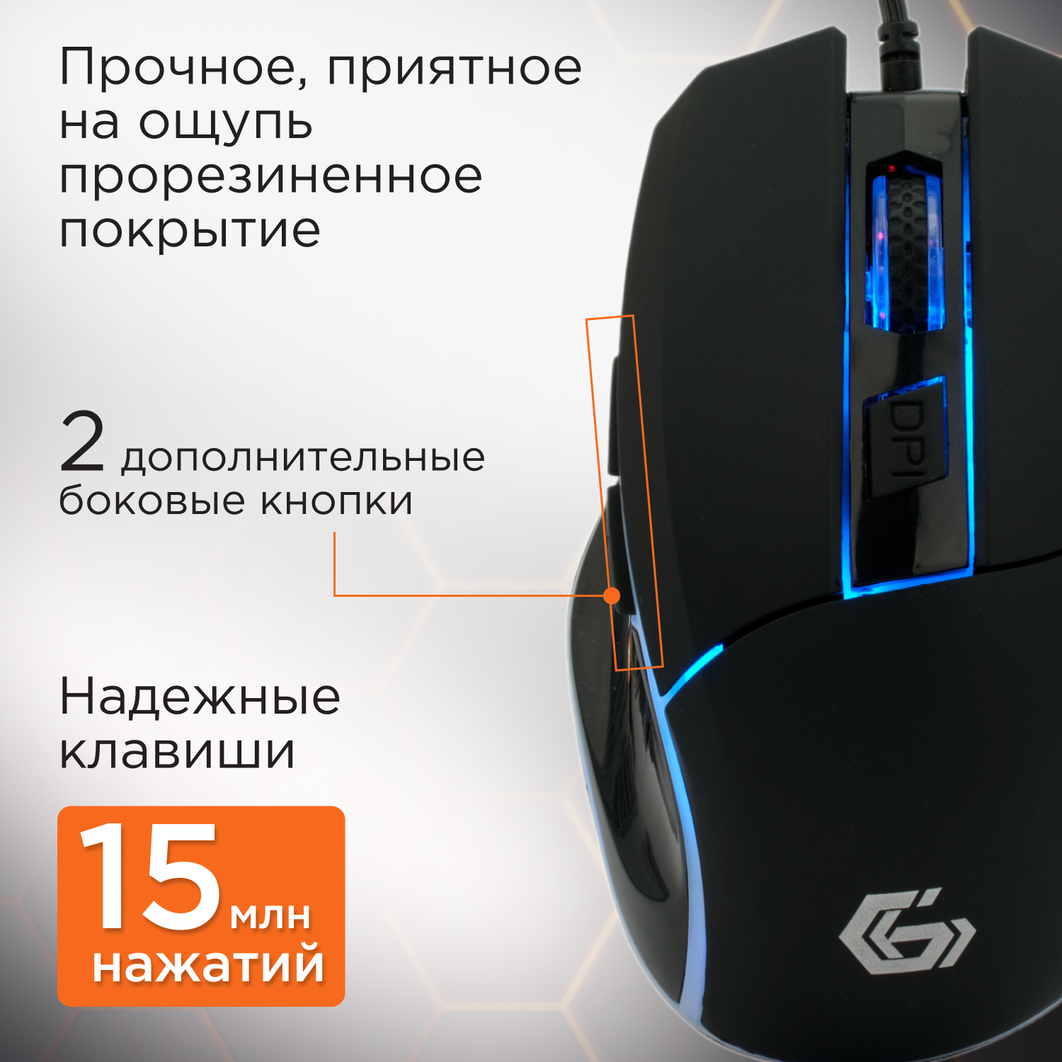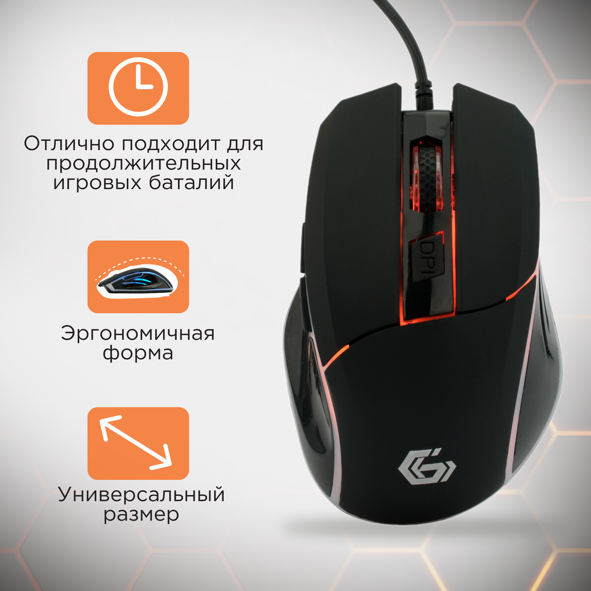 Мышь Gembird MG-500 USB (Мышь игровая, 5 кнопок+колесо-кнопка, 1600DPI, 1000 Гц, подсветка)