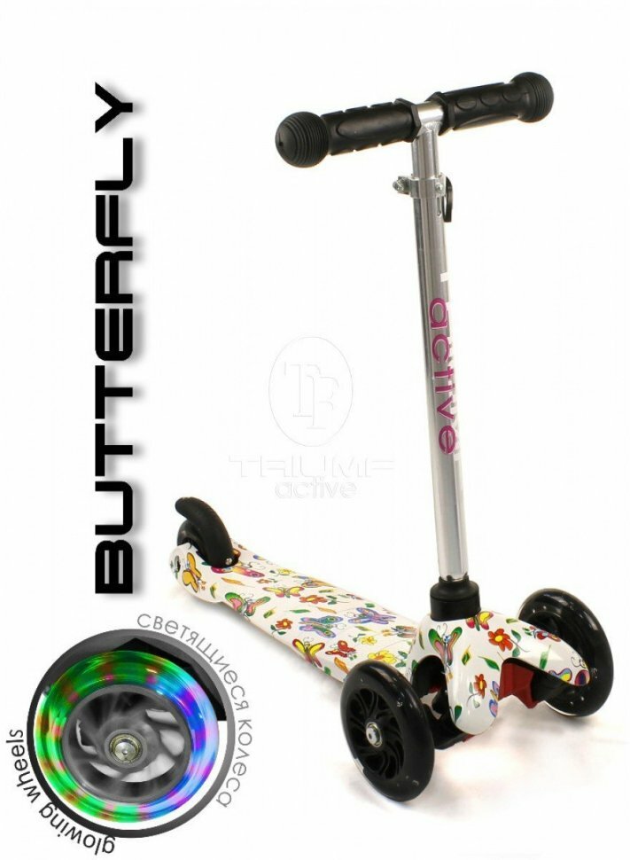 TRIUMF ACTIVE детский самокат Mini Up Flash Print SKL-06AHP Butterfly