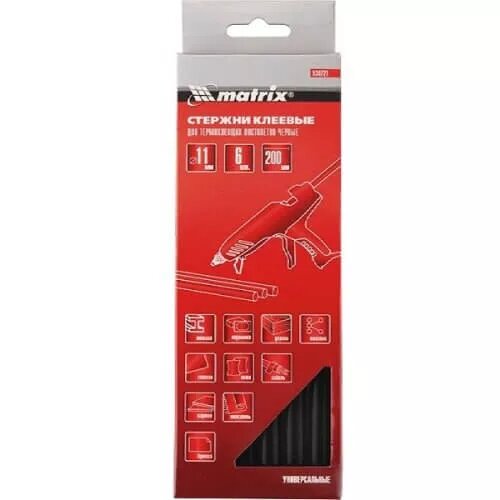 Стержни клеевые, черный, 11 х 200 мм, в упаковке 6 шт Matrix ( 930721 )