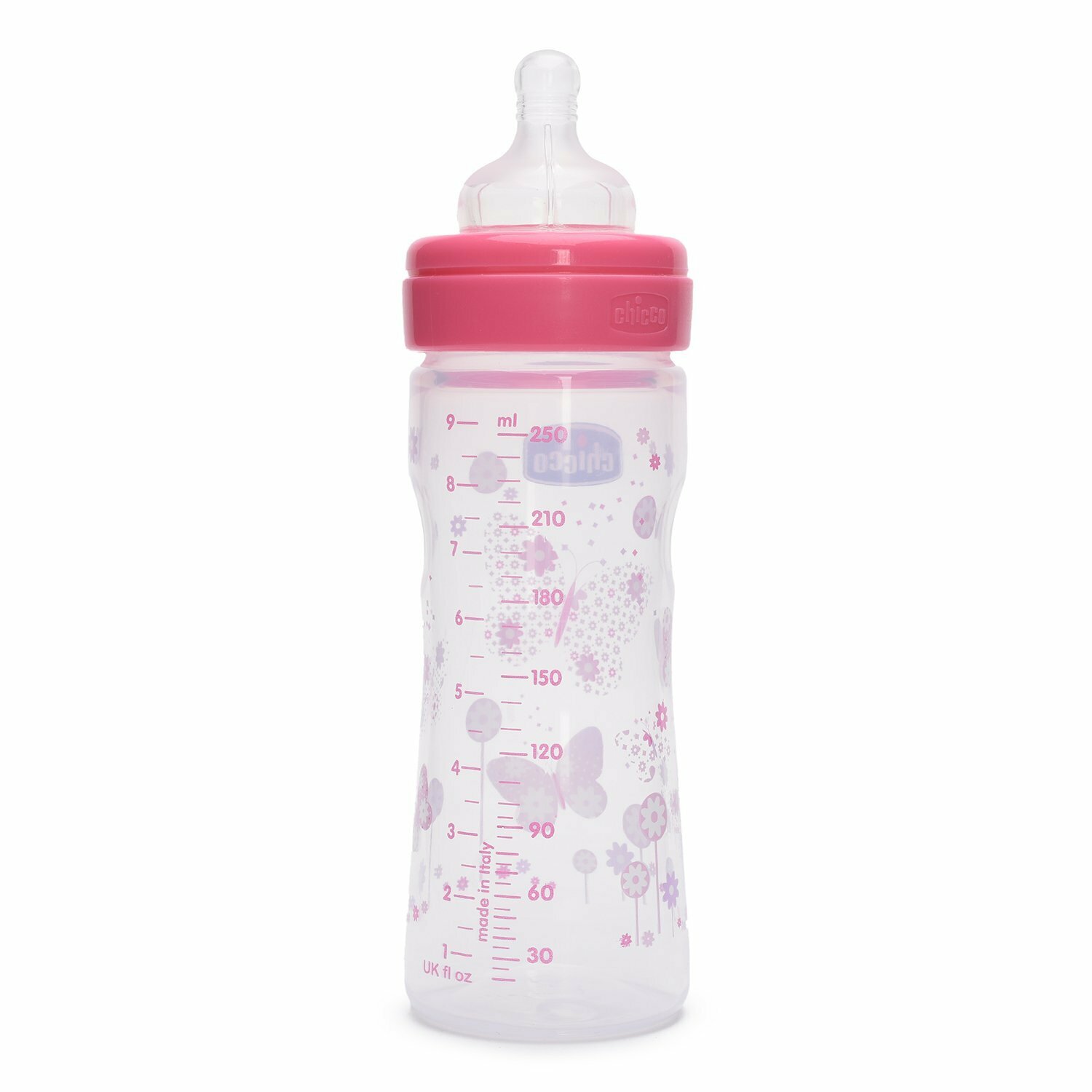 Chicco Бутылочка с соской из силикона Well-Being, средний поток, 250 мл boy/girl, с 2 месяцев, розовый