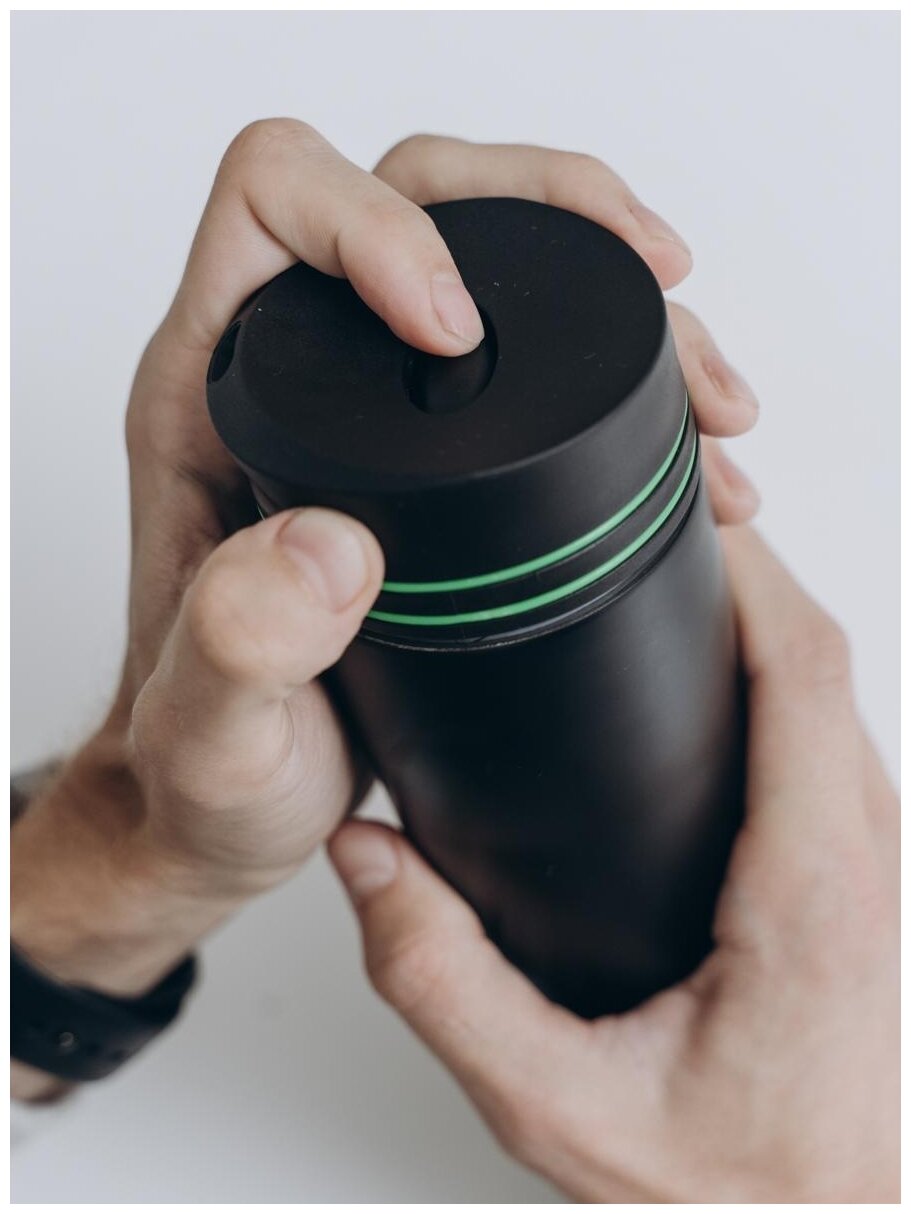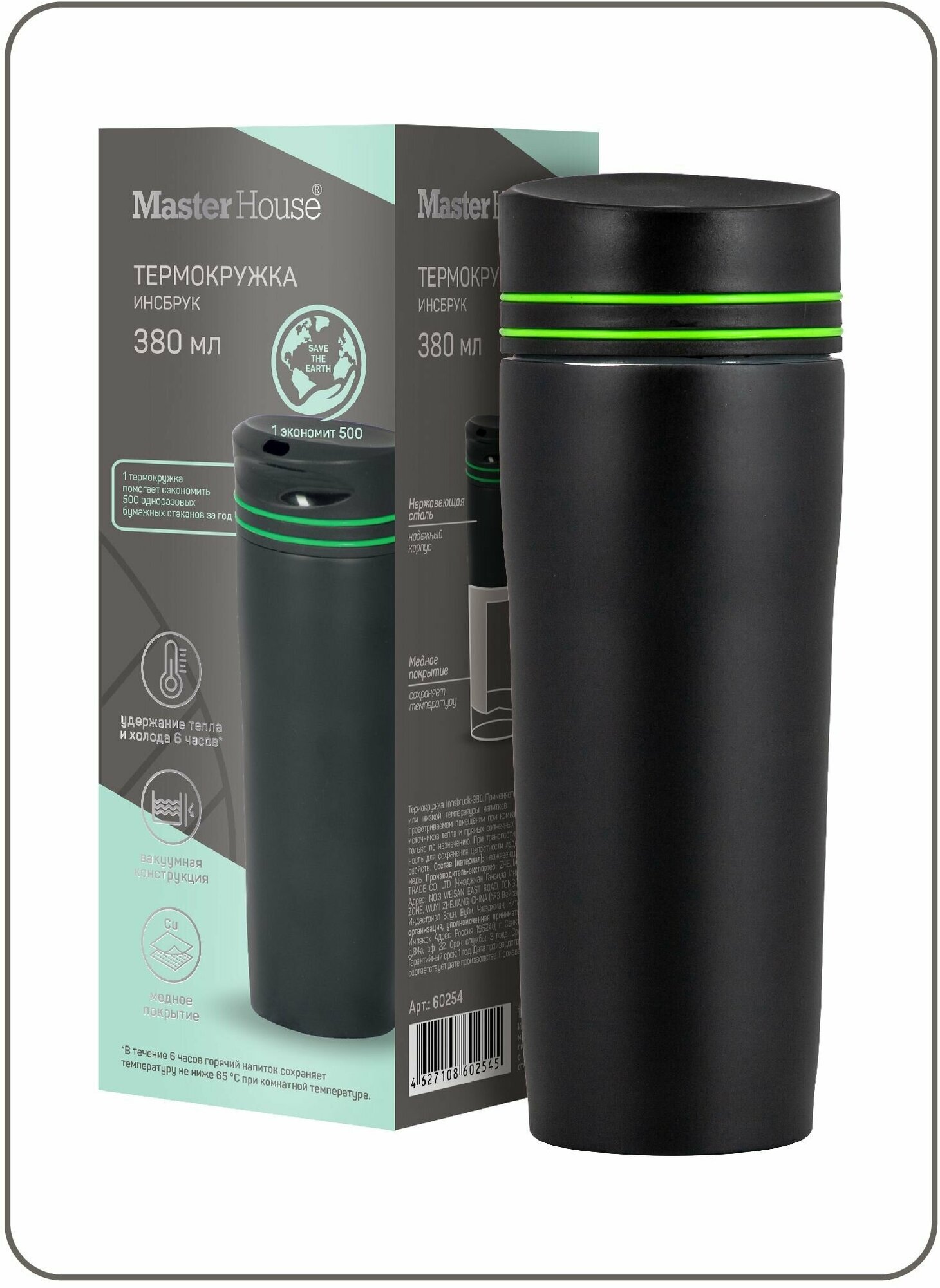 Термокружка Masterhouse Innsbruck-380, Колба Нерж.Сталь, 0,38Л, Черная С Зеленой Полосой, Арт.60254 (арт. 584103)