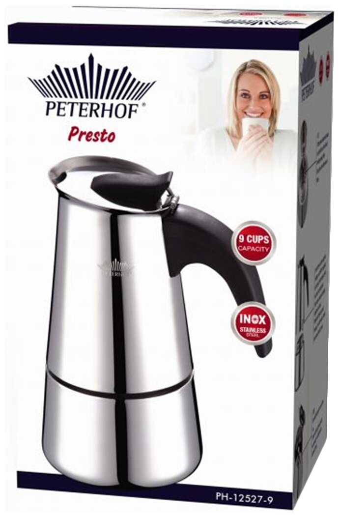 Гейзерный кофейник для эспрессо PETERHOF PH-12527-9 на 9 чашек интересное: