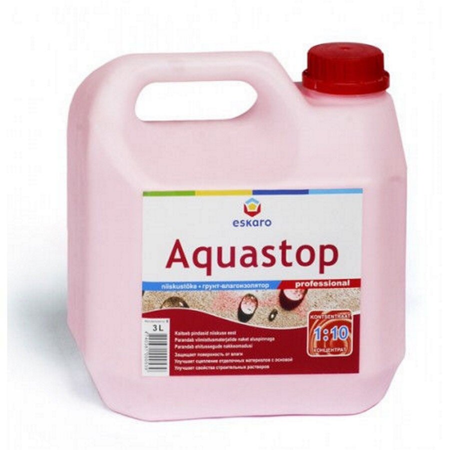 Грунтовка воднодисперсионная, акриловая, Eskaro, Aquastop Professional, концентрат 1:10, 3 л
