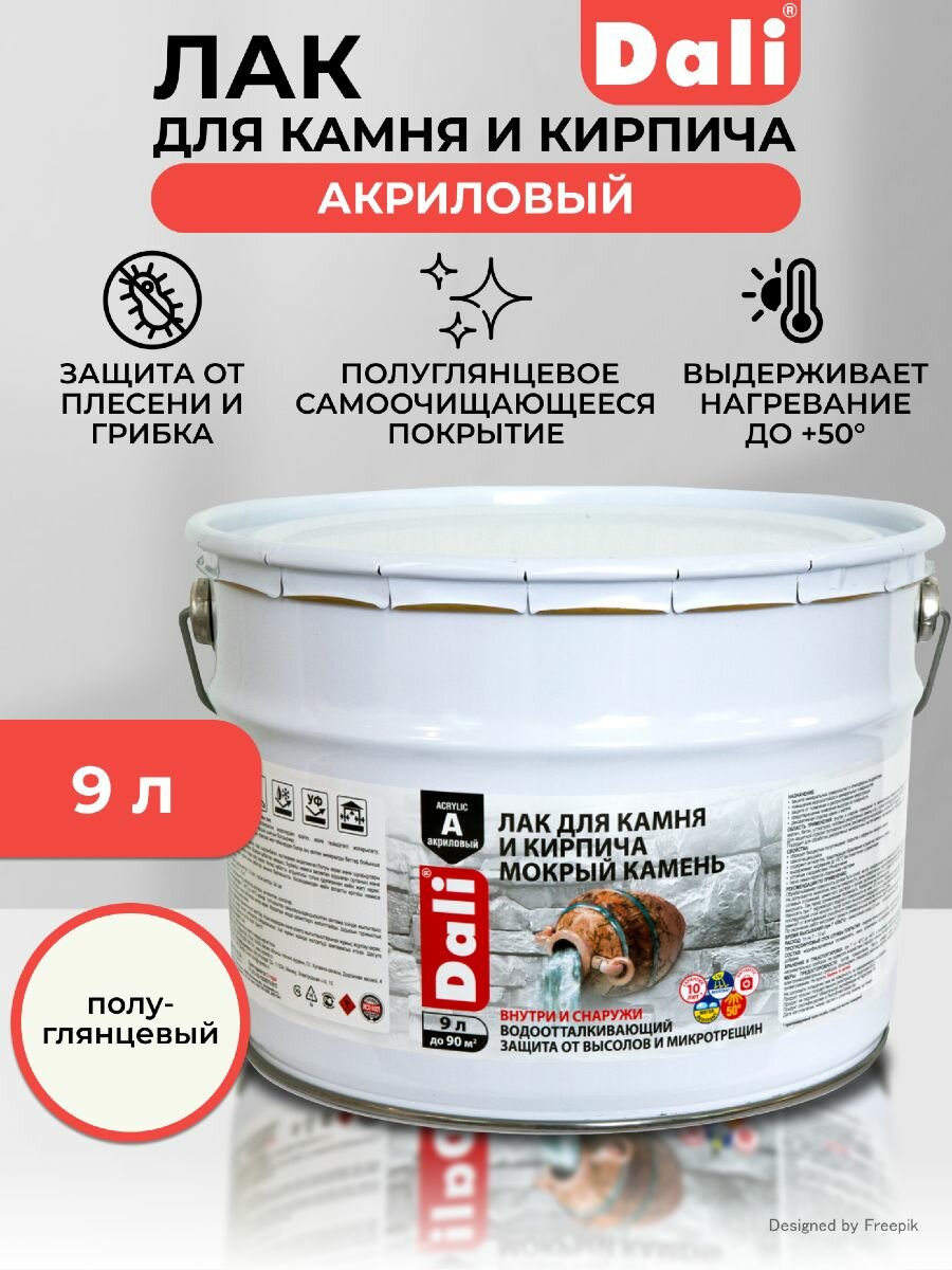 Лак для камня и кирпича Dali Мокрый камень, акриловый, полуглянцевый, 9 л