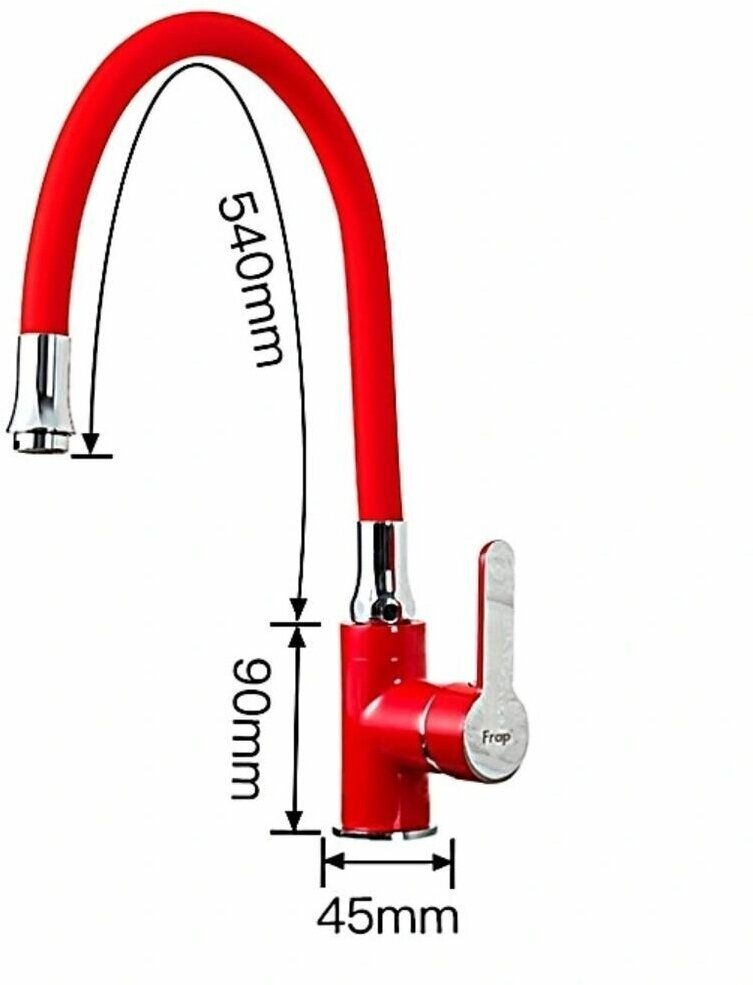 Смеситель FRAP F4043 для кухни, бок. D35мм, гибкий излив, п/гайку, хром-красный