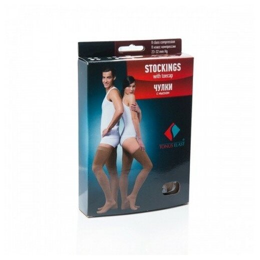 Чулки Тонус Эласт (Tonus Elast) 0403 LUX компрессионные 2-го класса с открытым мыском (Унисекс, Открытый, Рост 1 (158-170 см), 4 ( L ), Карамель)