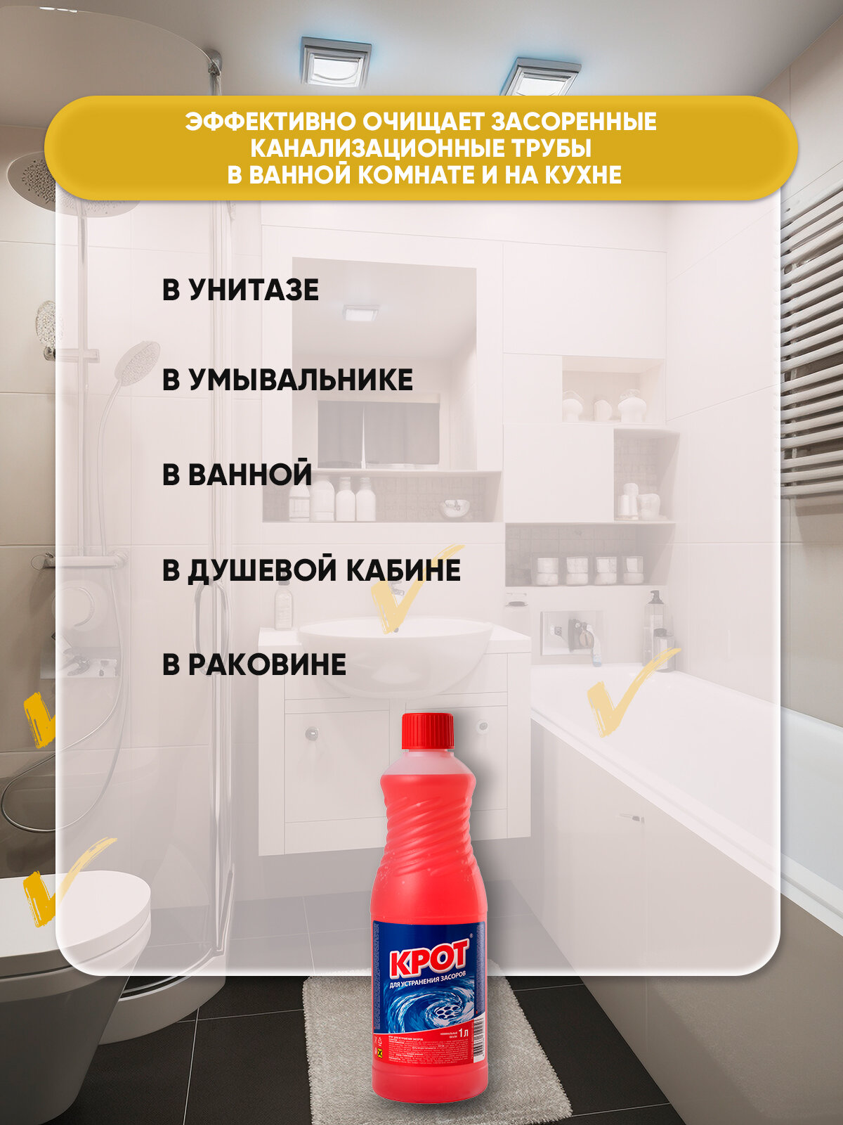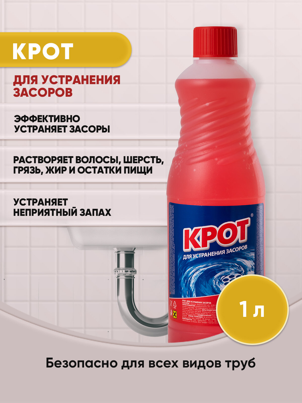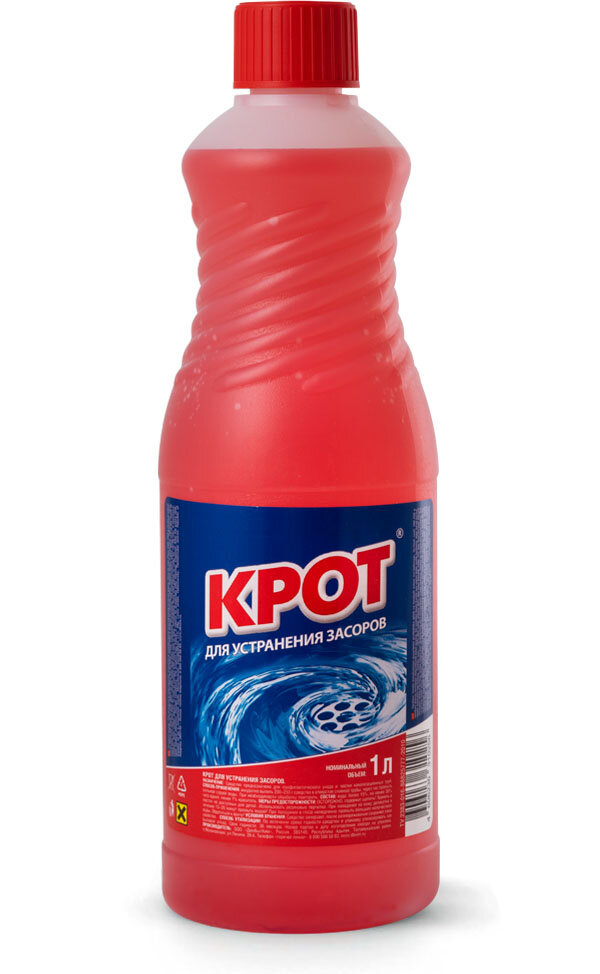 Крот "Для устранения засоров" 1 л, средство для прочистки труб, средство от засоров, средство от засора в трубах, прочистка труб, крот для труб