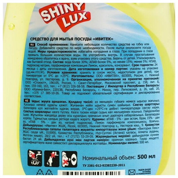 Гель для мытья посуды Shiny Lux " Лимон " 500мл интересное:
