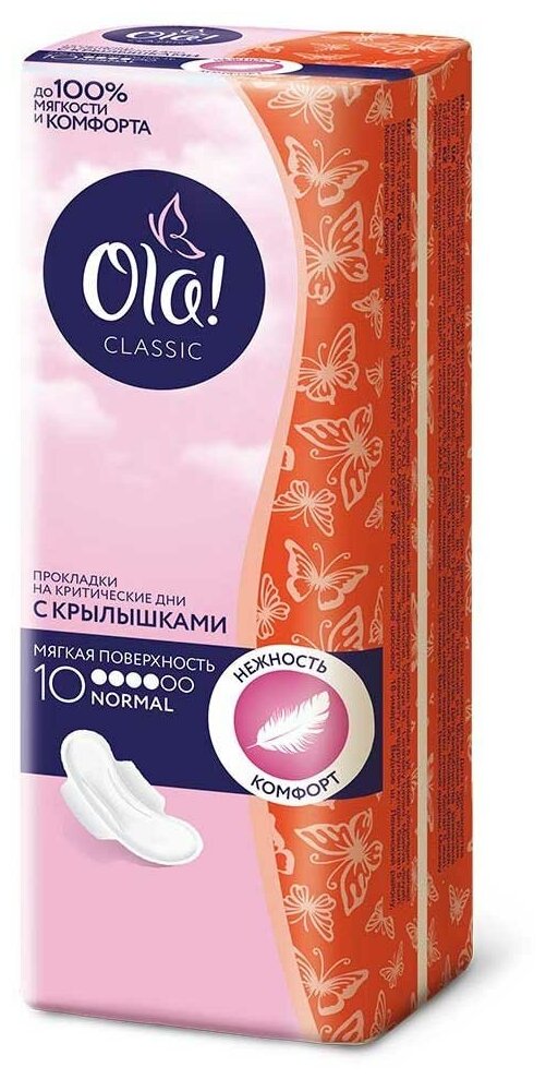 Прокладки гигиенические впитывающие Ola! CLASSIC WINGS NORMAL, Мягкая поверхность 10 шт.