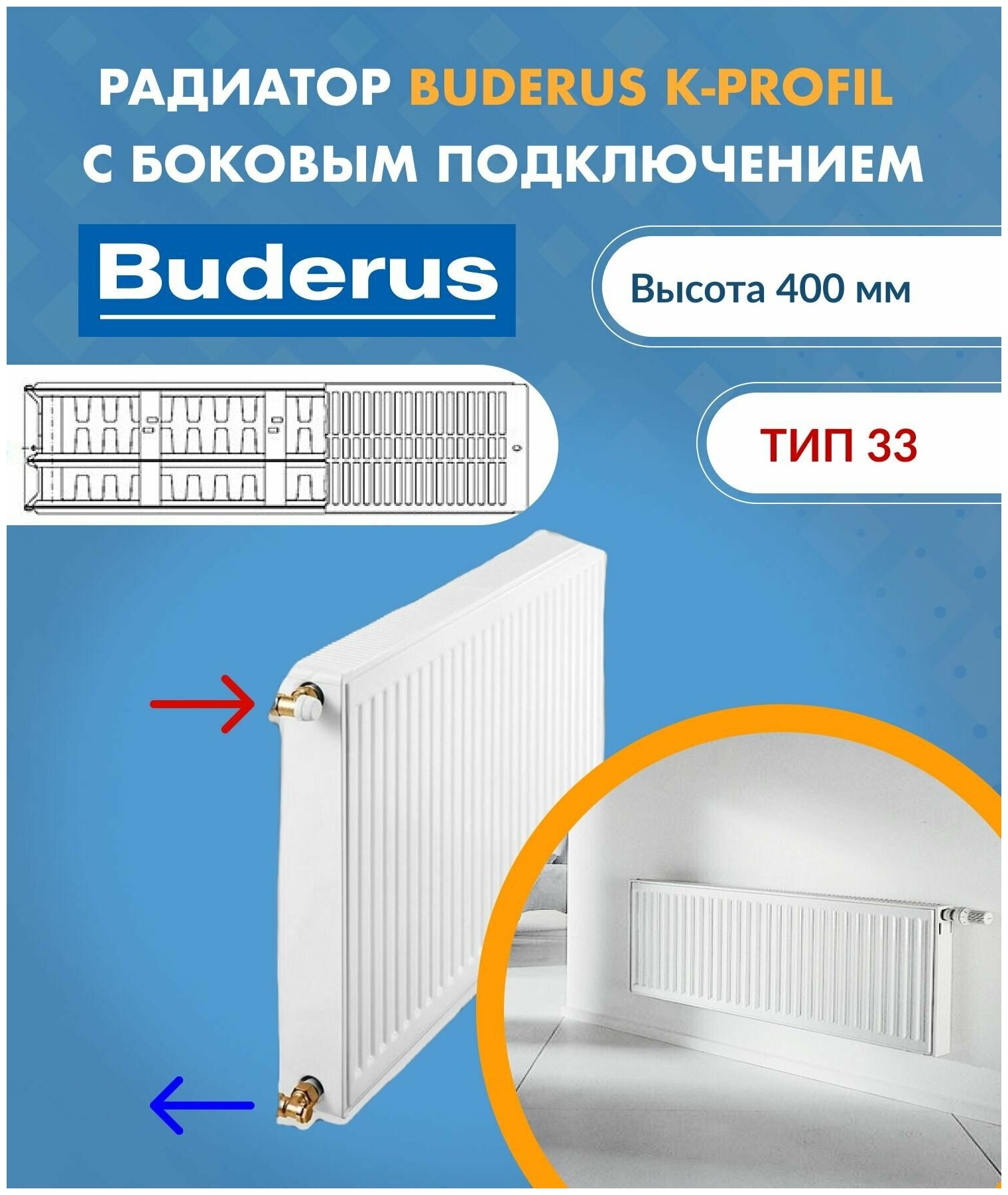 Стальной панельный радиатор отопления Buderus K-Profil Тип 33 высота 400 мм ширина 500 мм, 7724107405