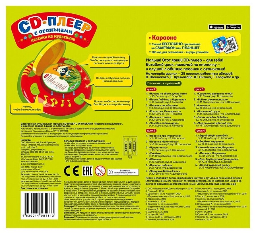 Ниже Вы можете прочитать отзывы на Песенки из мультиков (CD-плеер с огоньками), ознакомится с подробными характеристиками, посмотреть интересные обзоры и фотографии на Песенки из мультиков (CD-плеер с огоньками).