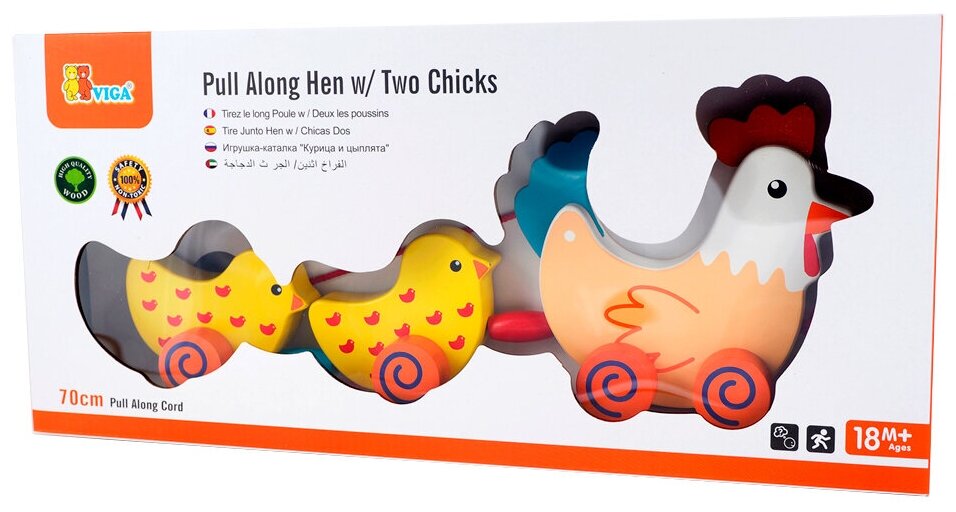Каталка на веревке Viga Курочка с цыплятами, в коробке 50078 интересное: