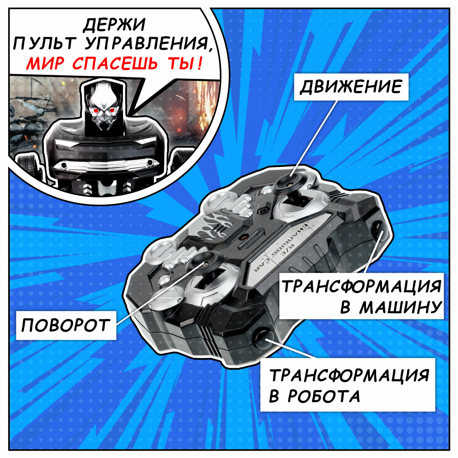 1toy Робот на р/у 2,4GHz, трансформирующийся в маслкар, чёрный