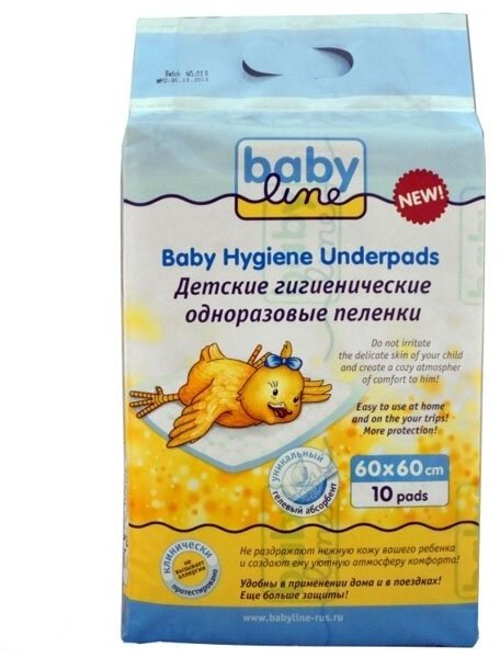 Babyline Детские одноразовые пеленки с гелевым абсорбентом 45*60 см 10 шт/12 DB021 . интересное: