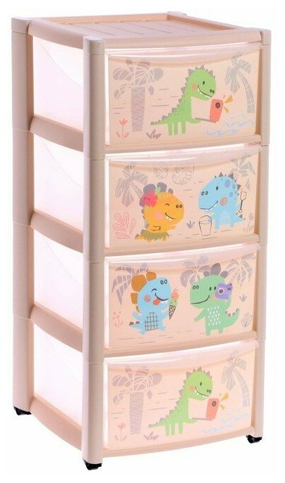 Пластишка Комод детский на колесах 4 ящика, цвет бежевый, рисунки микс