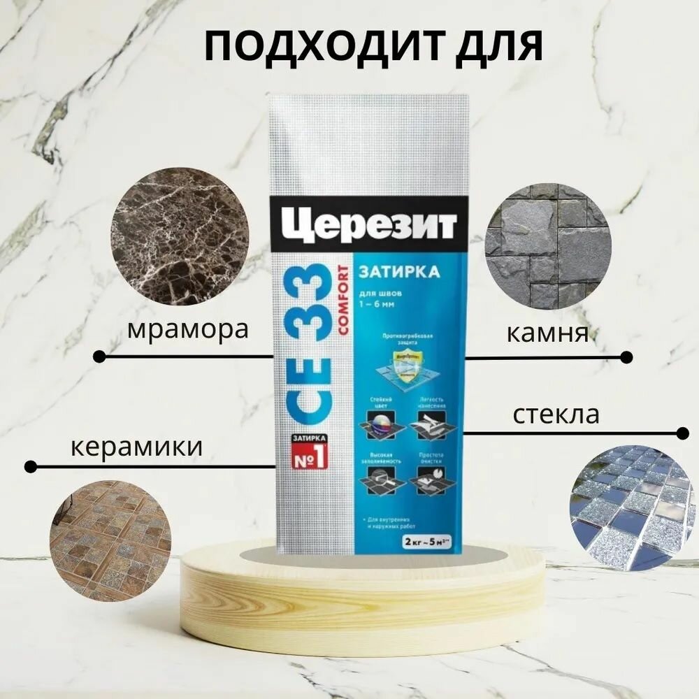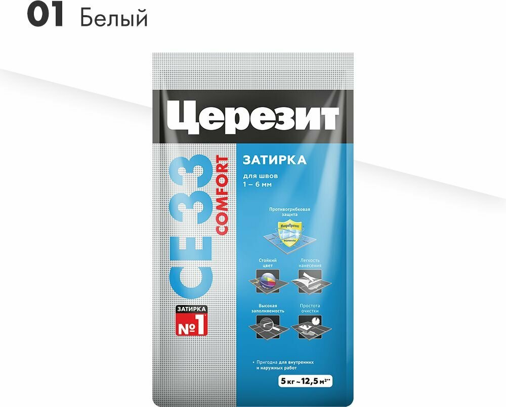 Затирка для швов плиточных облицовок до 6мм Церезит СЕ 33 Белый №01, 5кг