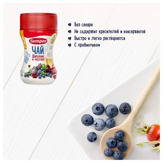 Чай Semper Шиповник и черника, с 5 месяцев, 0.2 кг