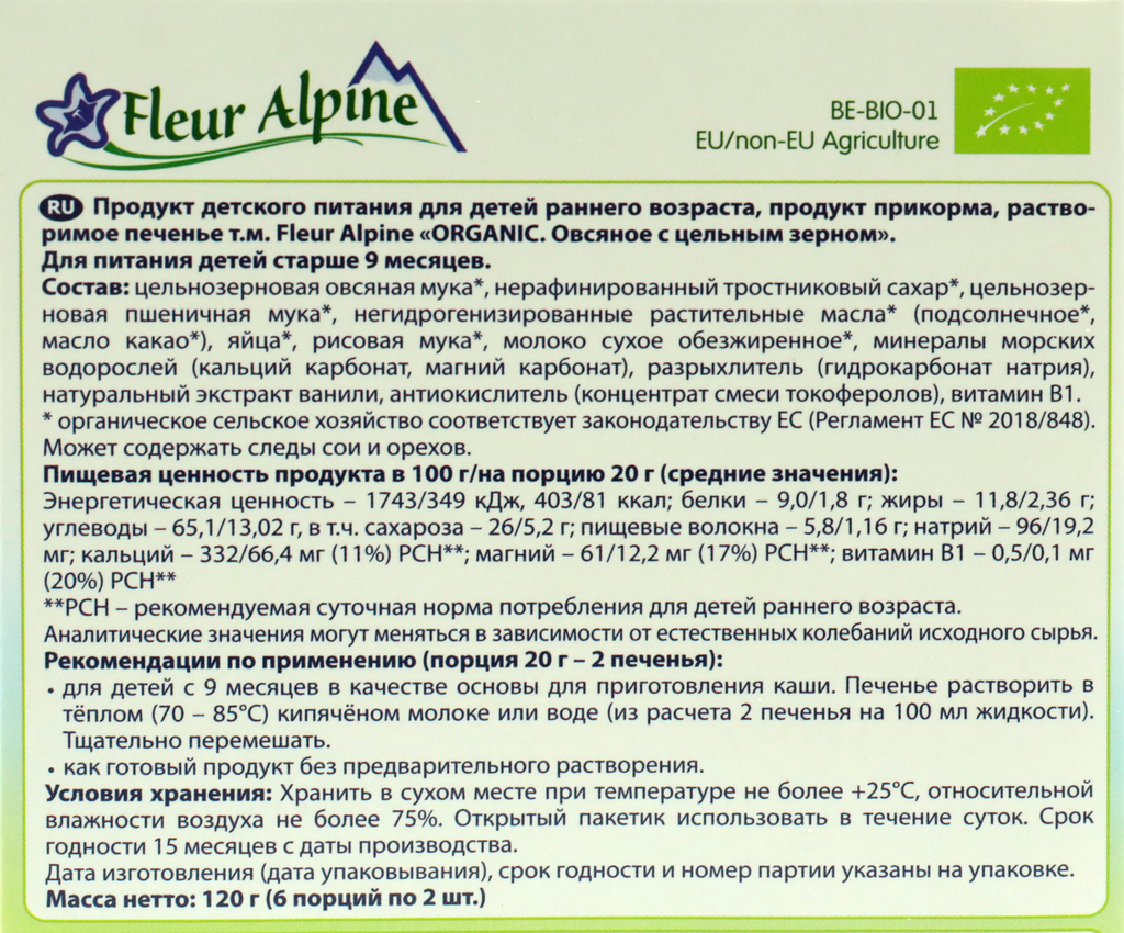 Купить Печенье Fleur Alpine Овсяное, с 9 месяцев, 120 г