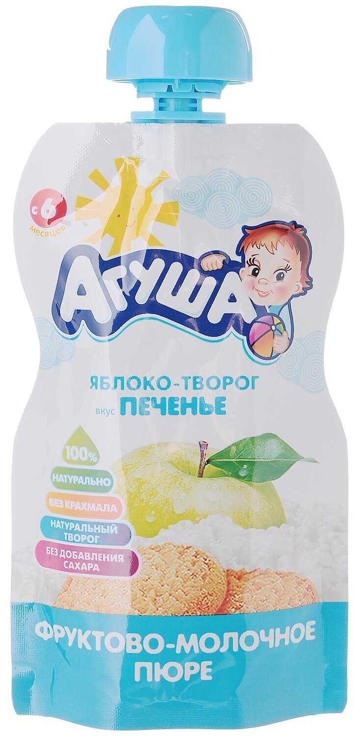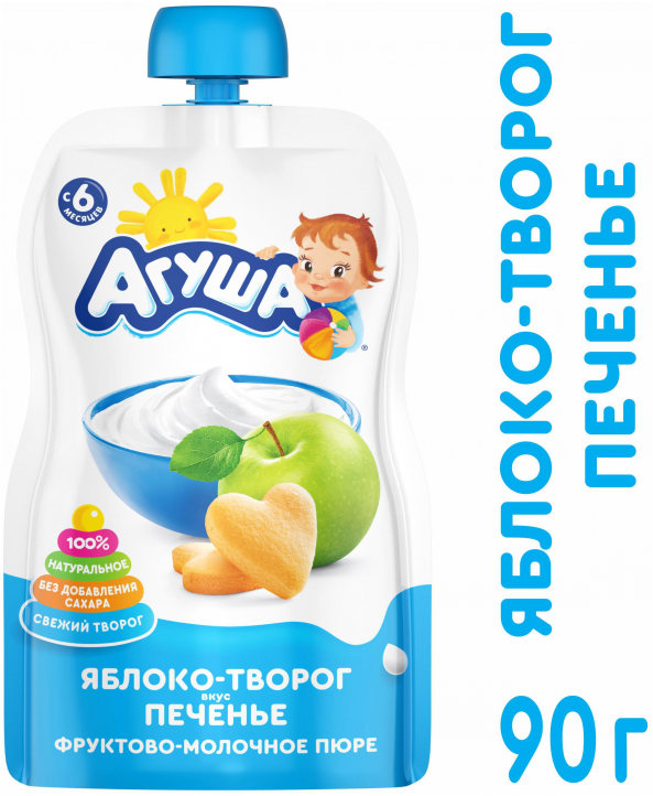 Пюре Агуша яблоко-творог вкус печенья (с 6 месяцев) 90 г/1шт интересное: