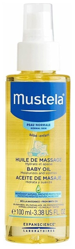 Mustela Масло массажное для новорожденных младенцев и детей, 100 мл, Mustela