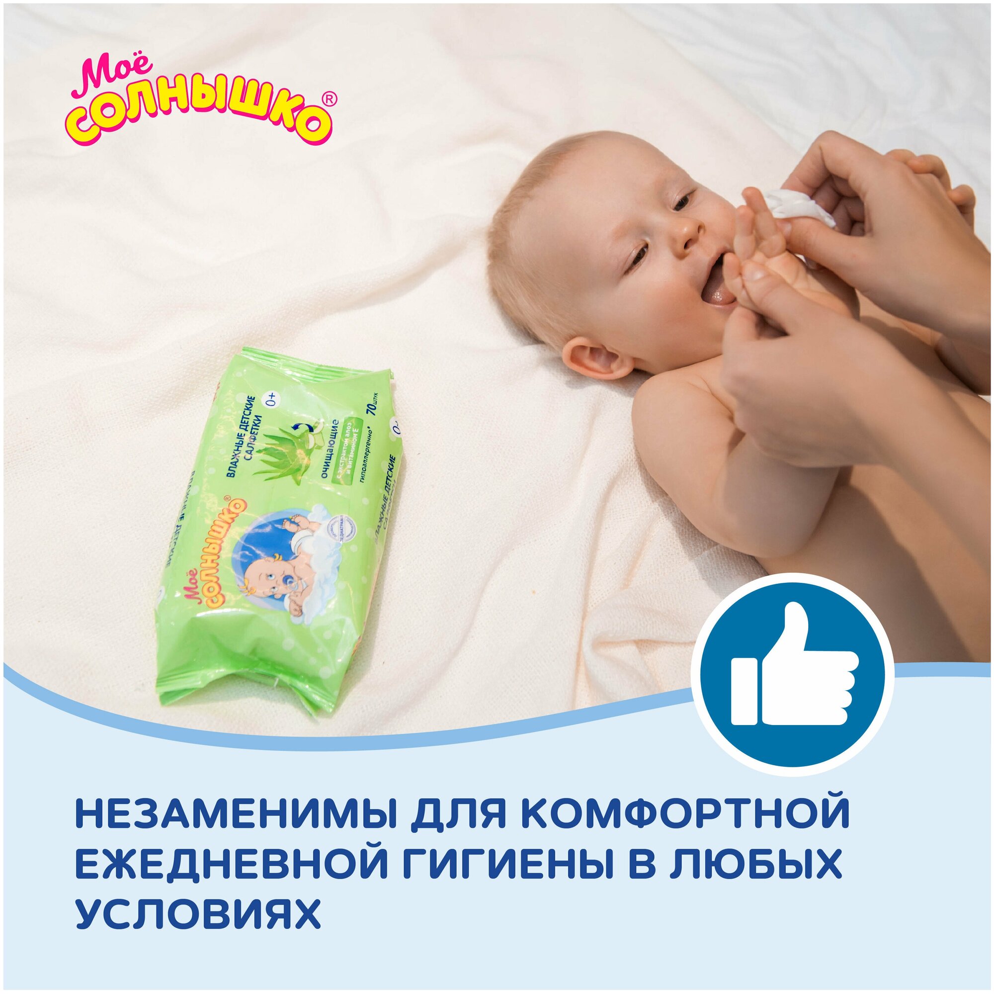 Моё Солнышко Салфетки влажные для детей Очищающие, 70 штук в упаковке