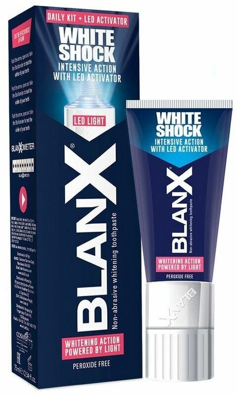 BLANX Зубные пасты Зубная паста отбеливающая со светоидной крышкой White Shock + Blanx Led, 50 мл