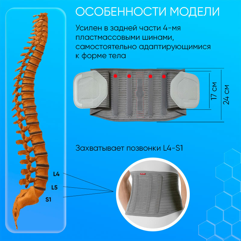 СохранитьОртез для позвоночника поясничный (LUMBO CAREZZA) арт.50R40 р.M/серый интересное: