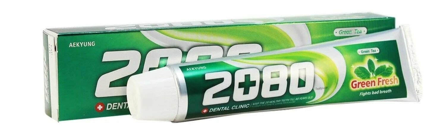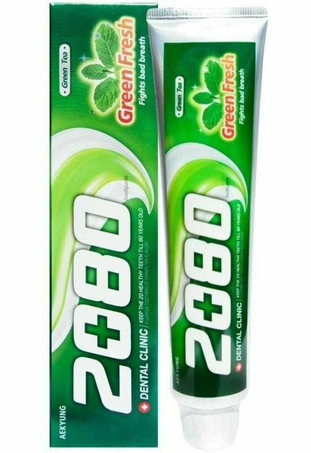 Зубная паста 2080 зеленый чай Aekyung 2080 Dental Clinic Green Fresh Toothpaste 120g