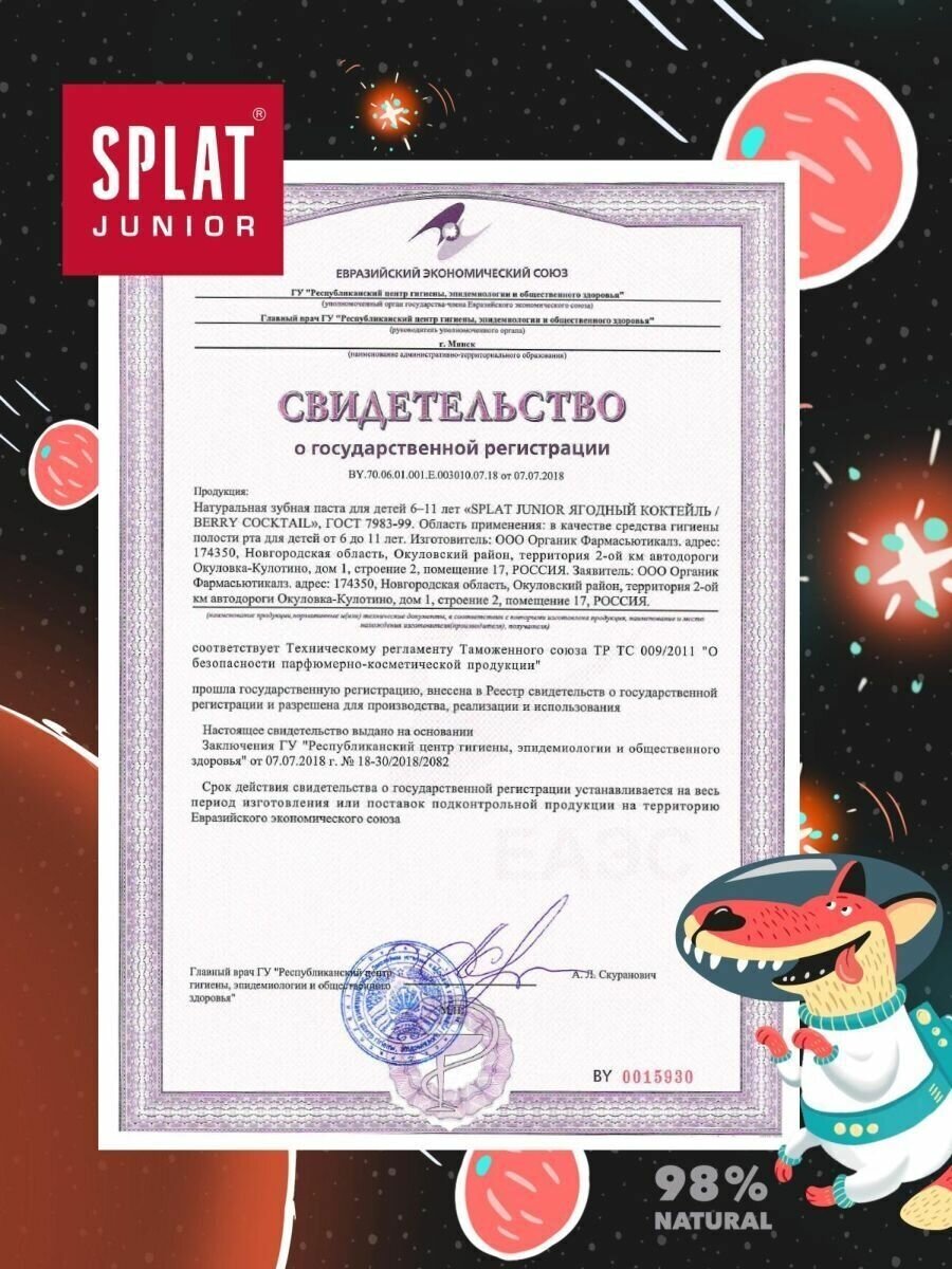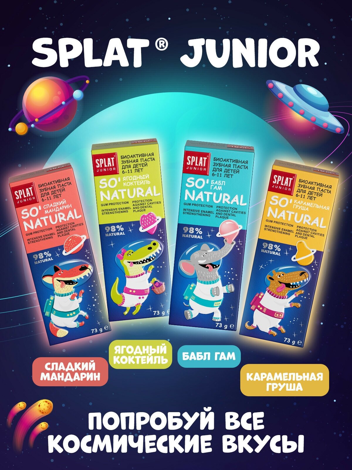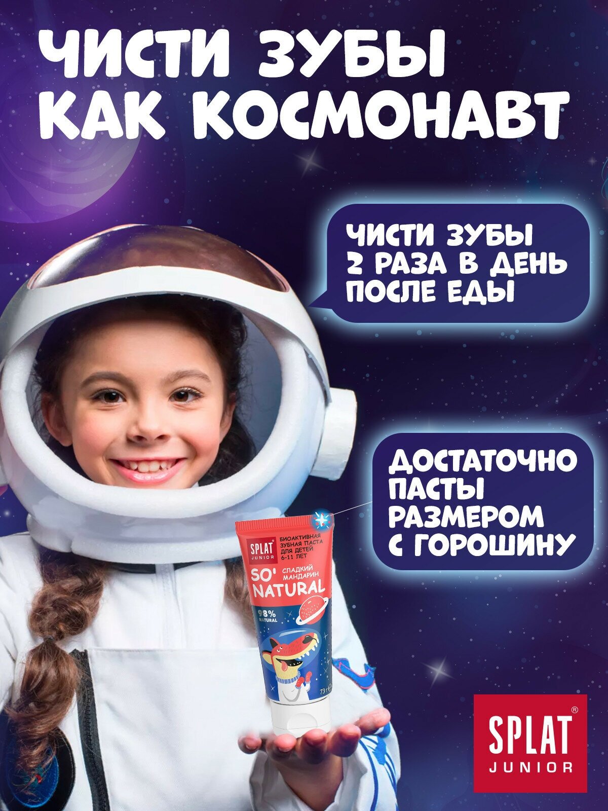 Зубная паста детская Splat Junior сладкий мандарин, биоактивная, защита от кариеса, укрепление эмали и десен, от 6 до 11 лет, 73 мл интересное:
