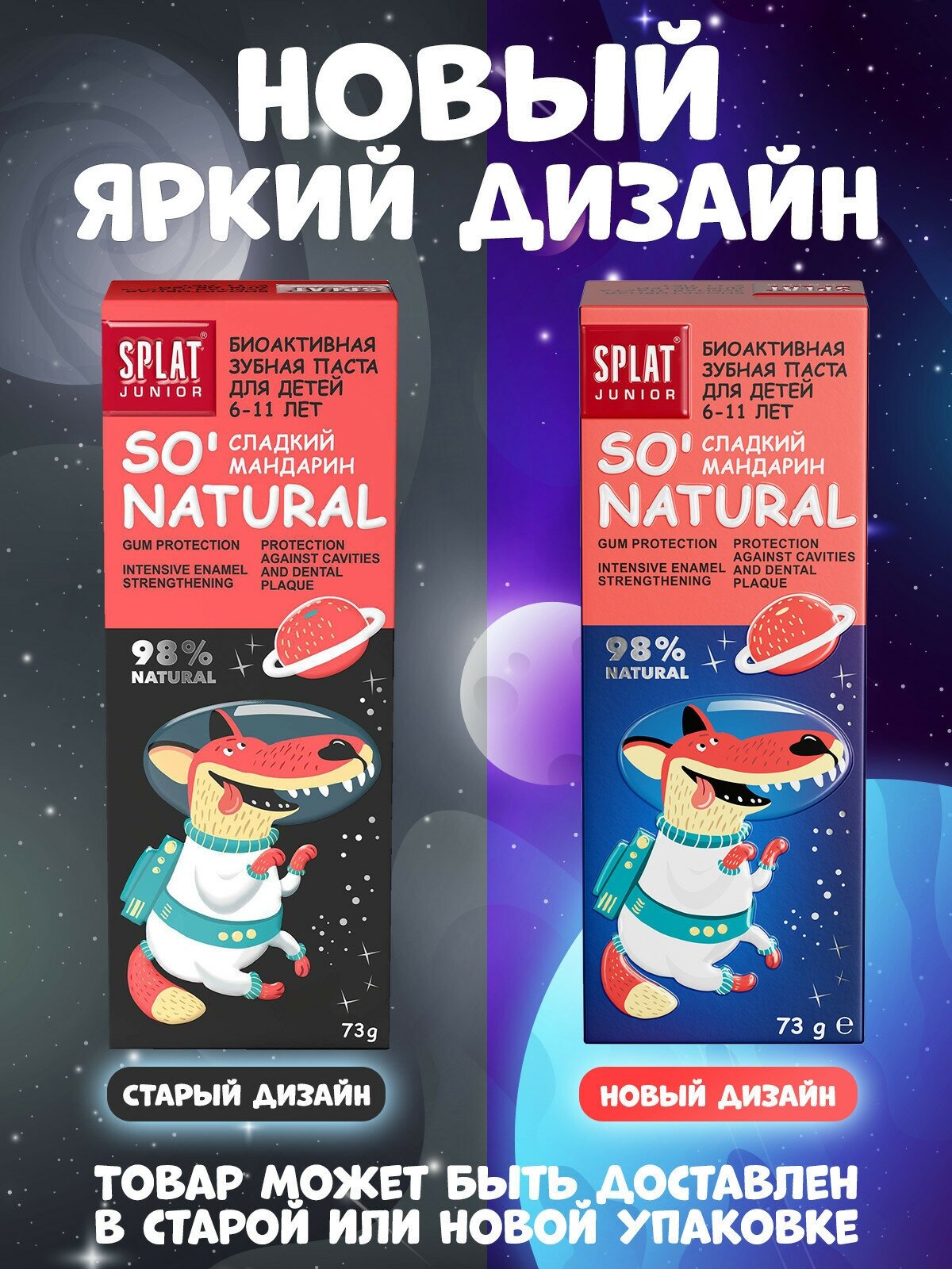 Купить Зубная паста детская Splat Junior сладкий мандарин, биоактивная, защита от кариеса, укрепление эмали и десен, от 6 до 11 лет, 73 мл