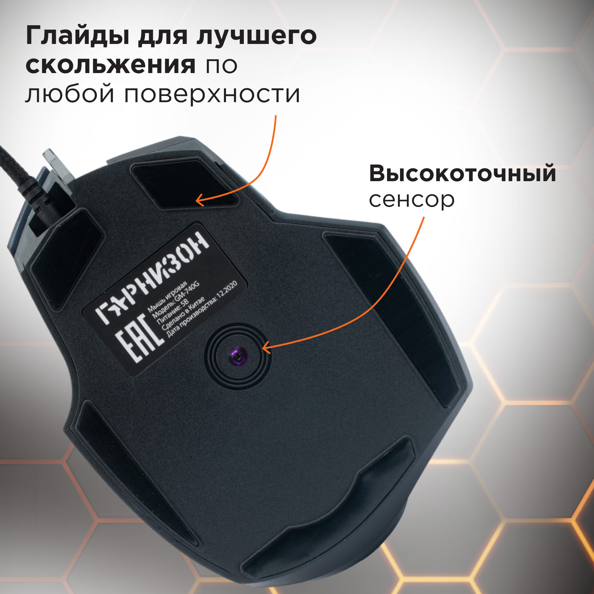 Мышь игровая Гарнизон GM-740G, "Альтаир", USB, чип Х3, черный, софт тач, 2400 DPI, 6 кнопок+колесо-кнопка, кабель 1,5 м