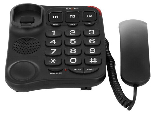Проводной телефон teXet TX-214, черный, крупный шрифт, цветовая индикация (126624)